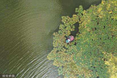 秋天,正是脆嫩甜美的菱角丰收时节,采菱便成了江南水乡农家日常和难忘记忆。菱角是江南百姓传统食物,与“莲藕、荸荠、莼菜、茭白、水芹、鸡头米、茨菰”并称为“水灵灵、鲜滋滋”的江南“水八仙”。据《本草纲目》记载,菱角能“补脾胃,强股膝,解内热,健力益气”,具有诸多药用营养功能。在农家生活中,采菱角并没有歌曲唱的那么轻松浪漫,采菱用的也不是小船,而是乘一只木桶或木盆,盆里放入小板凳,盘腿坐在前端,然后缓缓划进被红菱叶子遮掩得严严实实的河塘,用手划拨,或左或右、或飘游向前。划久了会腰酸背痛,不小心甚至还会“翻船”。不过也时有受惊的小虾、小鱼,从菱叶中跳进盆里,引得大家惊喜与欢笑。