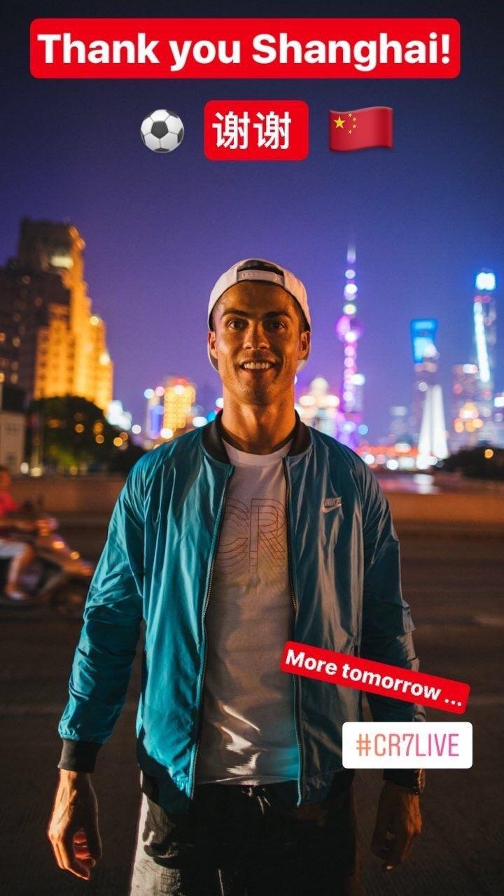活动结束当晚,C罗在自己的社交网站INS上发布了“感谢中国,感谢上海”的配图,以表示对上海之行的感谢及对下一站北京的期待。