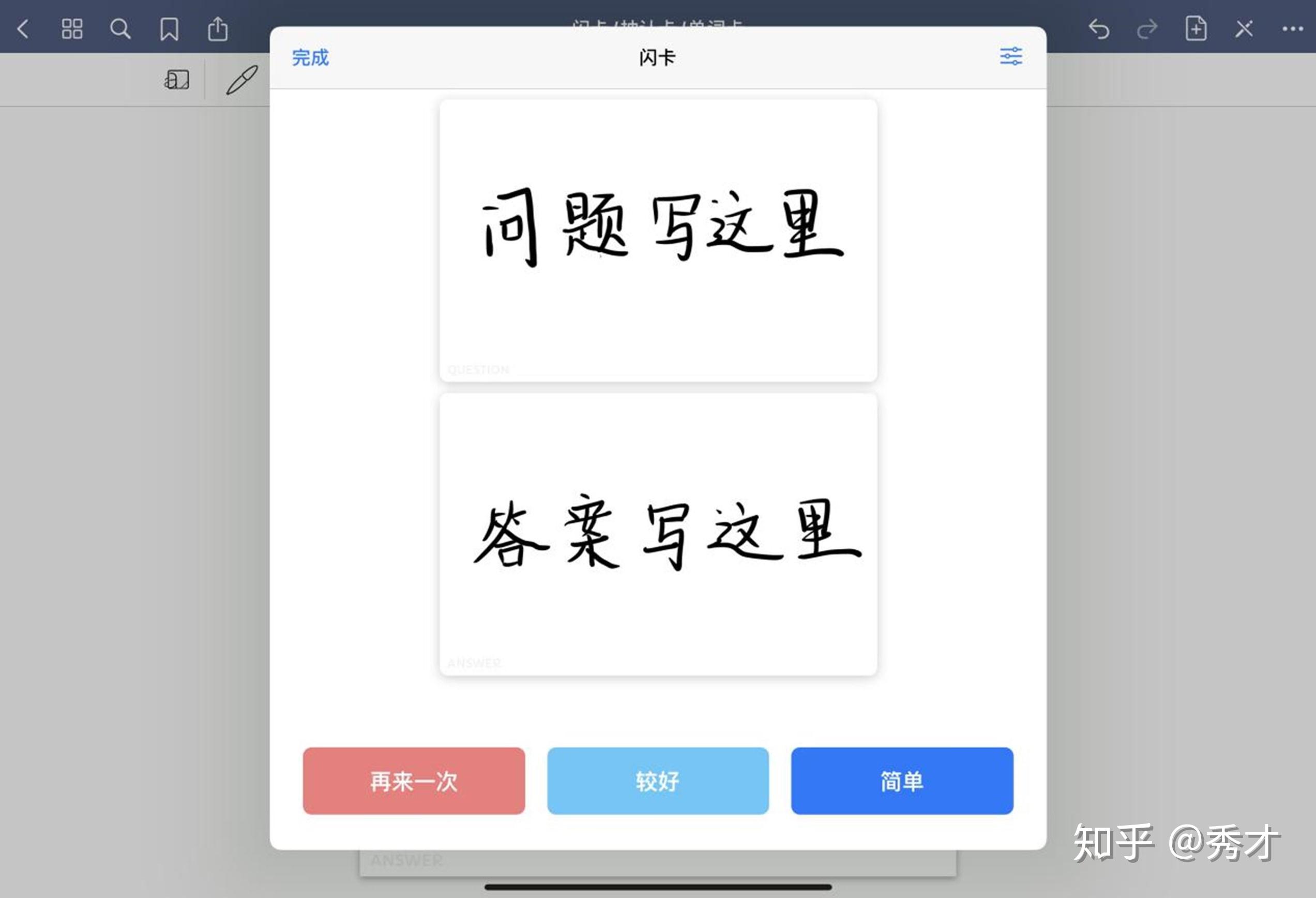 接下来说一个对学生特别有用的功能,它是Goodnotes独有的闪卡 ( 抽认卡/单词卡/答疑卡),相信很多小伙伴听过,但用没用过就不一定了。其实一开始我也不知道怎么使用,后来去油管上看了教程,就弄清楚怎么使用了。这一用就一发不可收拾了,无论是期末复习、工作笔记、会议纪要,修改批注,真的就只能用爽来形容了!