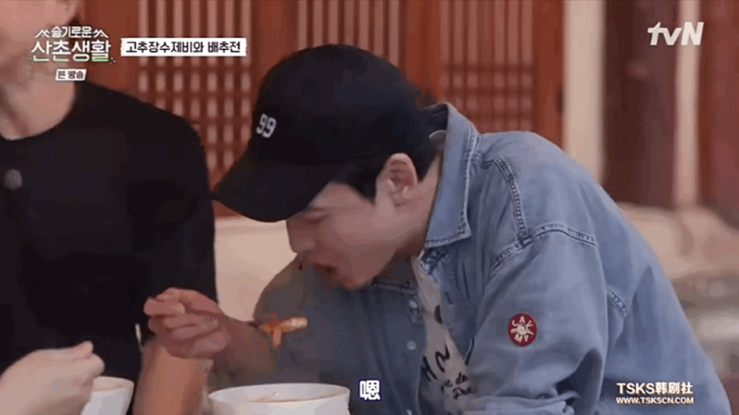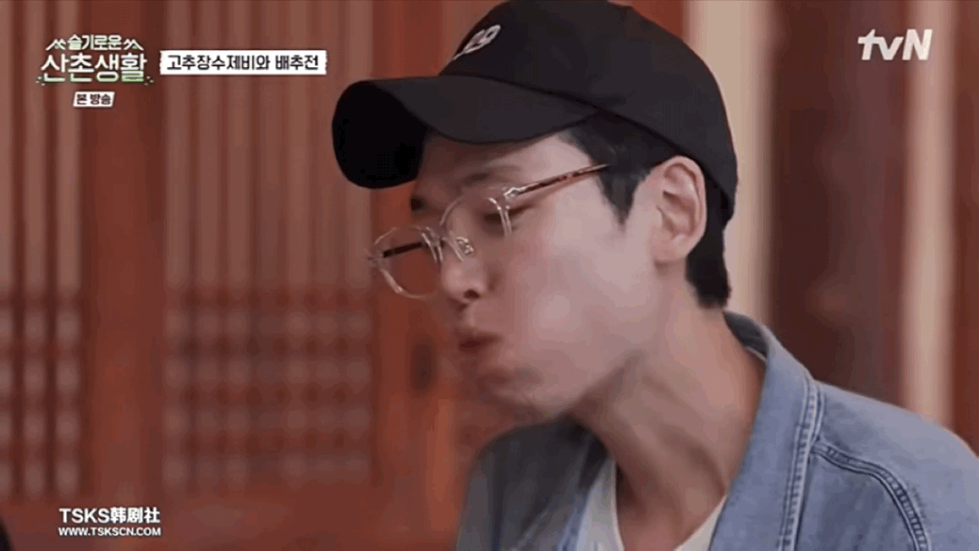 “翼俊”曹政奭用辣椒蘸着辣酱吃,过于生猛。
