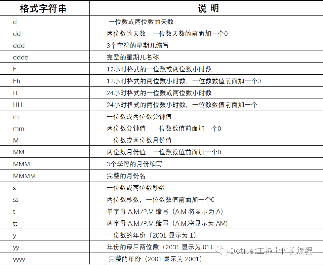 通过组合格式字符串,可以设置日期和时间格式,所有的有效格式字符串及其说明如表 2 所示。
