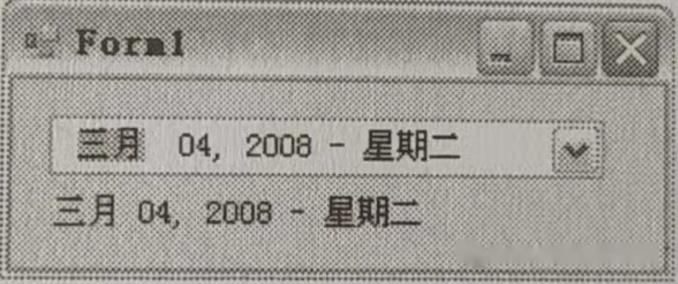 private void Form1_Load(object sender,EventArgs e){ //设置 deteTimePicker1 的 Format 属性为 Custom,使其用户自定义的时间格式生效 dateTimePicker1.Format = DateTimePickerformat.Custom; //通过控件的 CustomFormat 属性设置自定义的格式 dateTimePicker1.CustomFormat = "MMMM dd,yyyy - dddd"; label1.Text = dateTimePicker1.Text; //显示当前控件显示的自定义格式的日期 }