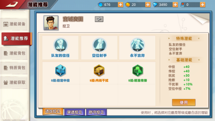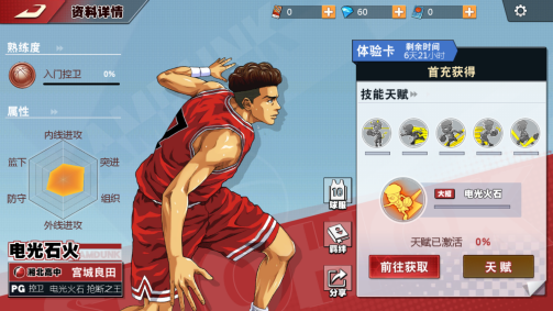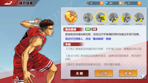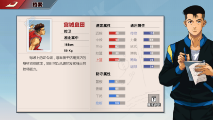 命中:宫城良田熟练的上篮技巧,会让其拥有更高的上篮命中。