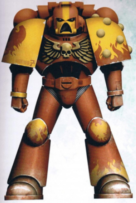 这是一个圣典团,这个战团在战斗时会先用一连串的燃烧弹进行攻击,然后在火焰熄灭之前进行冲锋打击对方。火焰领主们最喜欢的战术是发动一场全球性的进攻,首先是燃烧弹轰炸,如果防御者幸存下来,他们只能面对近距离的轰炸和钷素的烧烤。然后,战术小队将会从空投舱中冲出,给帝国的敌人带来死亡。