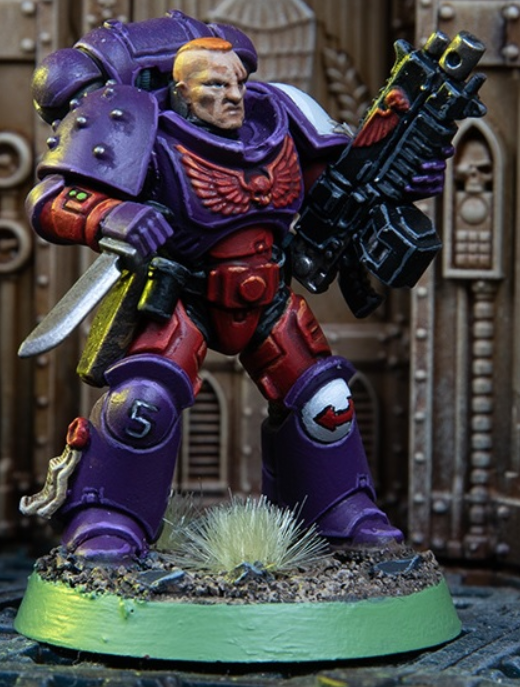 这是一个帝国之拳的子团。这个战团的战士都是务实的,没有废话的城市战争专家,他们不关心荣誉,只关心如何完成工作。该战团的配色涂装也成为了他们在废墟中隐藏自己的良好伪装。