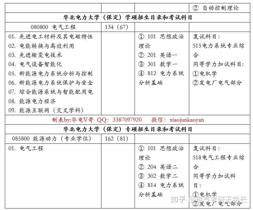 V哥 分别列出了北京华电和保定华电2021年学硕和专硕的招生目录和初试考试科目,如下: