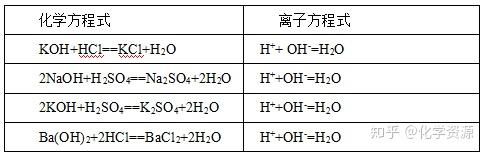 【学生讨论】上述四个中和反应的化学方程式各不相同,但它们的离子方程式却都是相同的,这说明了什么?