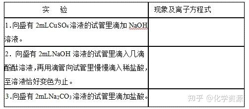 2.实验药品:0.5mol/LCuSO4溶液、0.5mol/LKCl溶液、酚酞溶液、0.5 mol/LBaCl2溶液、1mol/LNaOH溶液、1mol/LHCl溶液、0.5mol/L Na2CO3溶液。