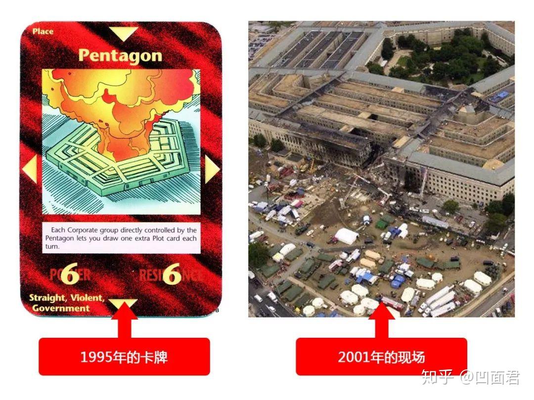 然而谁也没有想到 INWO 中名为" Terrorist Nuke"( 恐怖份子的核弹袭击)及" Pentagon" (五角大楼)的卡牌画面,尽然会与6年后才发生的美国911恐怖袭击事件的现场几乎完全一致。