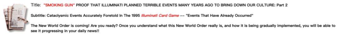 如果说由于时间跨度过大而导致我们无法亲身体验预言成真的既视感,那么95年发行的《光明会:新世界秩序》卡牌游戏就着实让人惊艳了:它成功预言了多个发生于千禧年后的世界级大事件。
