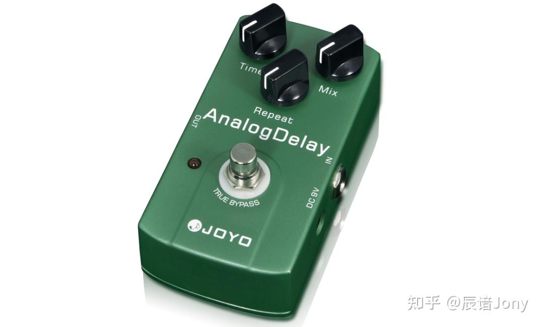 电吉他的延迟效果器可以把你演奏的声音重复出来,并且间隔时间、次数、声音大小都可以进行调节。下图这块是Joyo JF-33 Analog Delay延迟效果器。