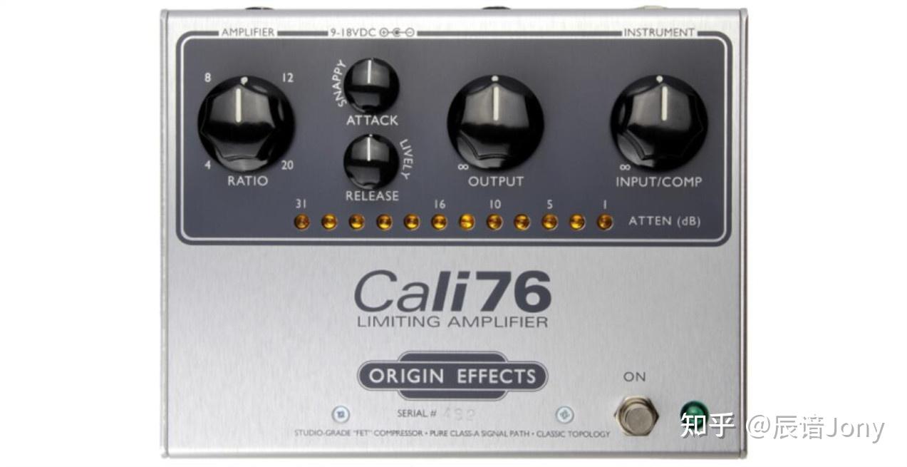 部分电吉他压缩效果器也被称为 放大器(Amplifier) ,可能这类效果器还是用 动态(Dynamic) 效果器的名称会更好。下图是Origin Effects Cali76 TX压缩效果器。