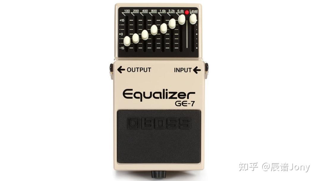 在电吉他上,均衡效果器可以起到修饰电吉他音色的作用。下图是Boss GE-7均衡效果器,可以看到这块效果器上面有七个频率点可以供你调节音色。
