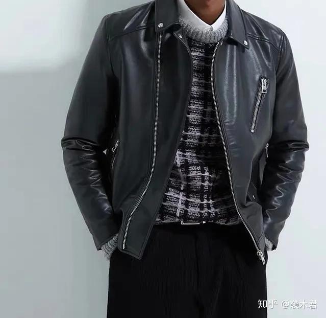 机车夹克给人一种叛逆不羁的感觉,柔软的皮革质感也增添了男人气息,一件好的皮夹克稍微注意一下保养穿个小十年都没问题,皮革材质越穿越有味道越旧越有质感。穿机车夹克时可以内搭比较厚实一点的T恤或衬衣。
