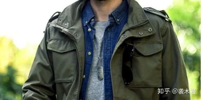 一件M65夹克内搭圆领T恤一件牛仔衬衣简单方便又出效果的搭配。