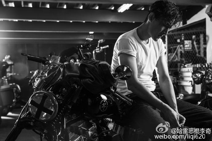 摄影师“哈雷恶棍李奇”(据说是他把胡歌带入阿美咔叽坑的)曾经给胡歌拍过一组黑白机车照片,白T恤、牛仔裤与工程师靴,无疑是在向上世纪50年代风靡的机车文化致敬。