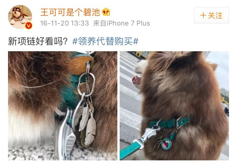 令人哭笑不得的是,富二代&网红界的一股清流——王思聪,给自己的爱犬王可可也戴上了Goro's的银饰。