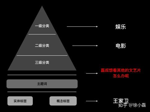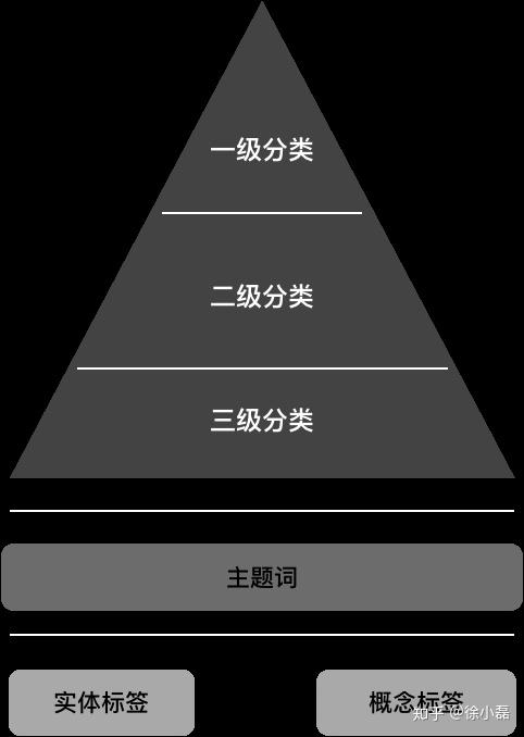 在实际的工程应用中,标签体系通常是和分级体系结合在一起成为完整的内容分类体系。相对粗粒度的分类体系和相对细粒度的标签体系各司其职共同发挥作用。