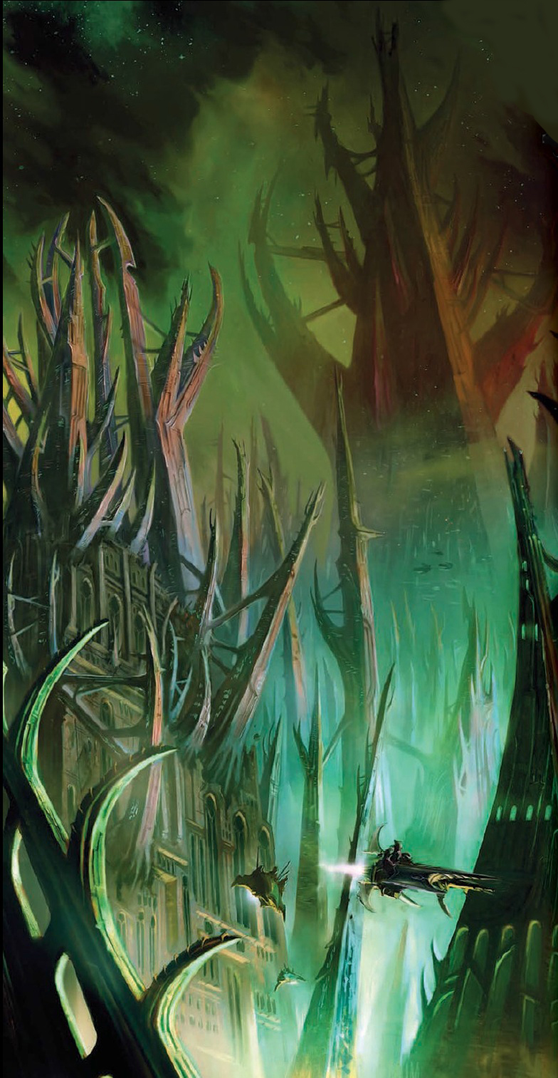 无尽黑暗之城科摩罗是一座不可思议的超维度星港城市,靠两颗偷来的恒星提供能源 (均故意取自有生命居住的行星系) 。 想象一下17世纪牙买加皇家港+《星球大战》的莫斯艾斯利太空港+以毒品/暴力/非法性产业为经济基础的城市 (底特律) +《奇异博士》式的扭曲建筑群,这里的生活大概就像19世纪新加坡或者古罗马最颓废堕落的那段日子一样,它的名字科摩罗 (Commorragh) 本身就取自圣经中的罪恶之城蛾摩拉 (Gomorrah) 。 作为一座知名星际贸易港/黑市,并非只有灵族住在科摩罗:形形色色的人类和异形雇佣兵躲藏在空城(Null City)——面积足有一个国家大小的废弃棚户区——等着不开眼的雇主上门;不断增长的 兽人 人口已经成功侵入了低层市区,经常被抓到竞技场作为精英怪展览。