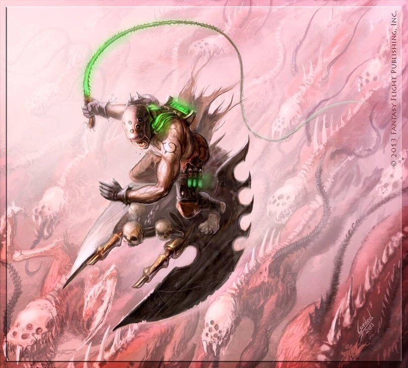 明目张胆地偷用了漫威绿魔的形象,所以这玩意儿又叫黑魔滑板哥或者太空绿魔。 他们致力于在飞走前尽可能快速地造成伤害,而为了获得这样的速度和机动性,GW为恶狼小队配备了 诺曼·奥斯本 的飞天滑板......讲真,就算GW有“致敬”其他作品的悠久历史,但这也太......总之!他们在自己的飞行器下面悬挂了毒晶吊舱和各种大刀片子,可以沿途肢解一些倒霉蛋儿。 恶狼主要由黑暗灵族中的流放者、暴乱分子和通缉犯组成, 是的就算在科摩罗也有一套规则能给人定罪,而这帮人即便在其他黑豆芽眼里都要被称为罪犯,足见其凶恶。