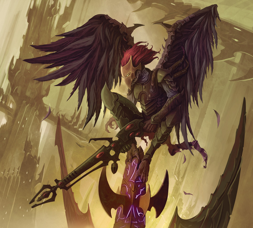 又一架以黑暗灵族标准来看”全副武装“的高超音速战斗机。刃翼鸦通常装备双联裂解枪或黑暗光矛、一挺双联毒晶枪或一门毒晶炮,外加可以搭载多种弹药的刃翼导弹架,比如单镰导弹、坏死毒素导弹或力场破坏弹。 刃翼鸦飞行员在高速战斗方面非常娴熟,通常选拔自最精英的掠袭者摩托骑手——与参加那种杂耍式的死亡摩托大赛相比,坐在驾驶舱向对面倾泻弹药简直就像回家养老一样轻松。