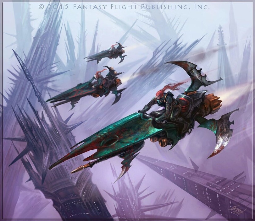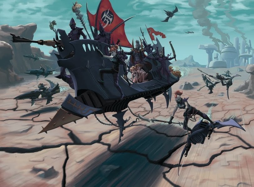 外出劫掠并不总是一本万利,成功自然是好处多多,但失败则可能让全团的人颜面扫地,所以黑暗灵族对软弱或愚蠢的领导者一贯保持着零容忍态度。当然, 如果你不想加入阴谋团给老板打工,也可以试着去巫灵教派或者血伶人协会碰碰运气, 两者同样是黑暗灵族社会的重要组成部分——巫灵教派负责通过角斗比赛为大众提供娱乐和美味的痛苦,血伶人则负责管理各种技术事物和对奴隶的日常折磨。对于规模较大的巫灵教派或血伶人协会来说,与阴谋团一起外出打劫是很常见的事情,甚至有时候干脆自己独立行动。