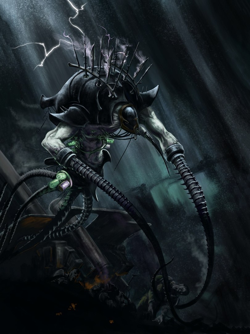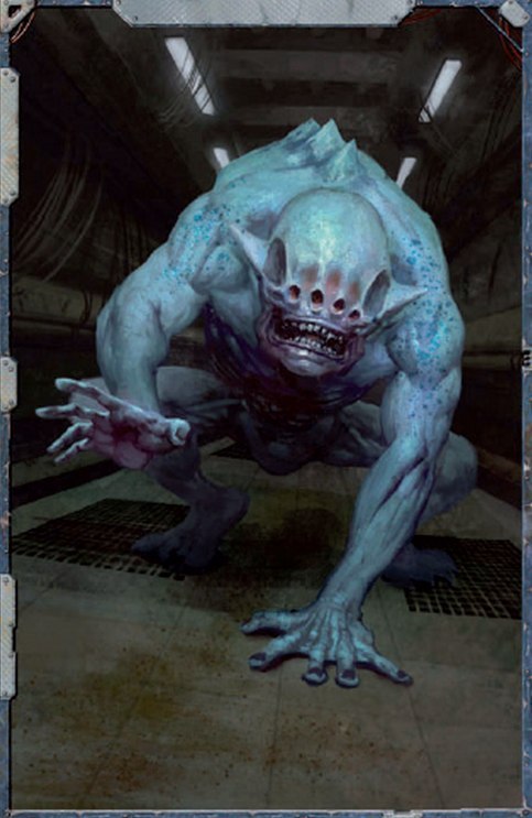 又名丑爆了的网道食尸鬼,来自黑暗灵族荒城沙杜姆(Shaa-dom),经常被执政官诱拐回家当珍兽。 它们依靠嗅觉而非视觉狩猎 (脸上的洞不是眼睛而是鼻孔) ,一旦闻到猎物的气味就会疾速追杀到天涯海角。乌古尔的皮肤就像钢铁般坚硬,抗打击能力令人难以置信,与此同时它们的身体却又极度柔软,可以扭曲成各种奇怪的姿势钻进建筑缝隙之间。 这玩意儿在漫画里一口咬穿了星际战士的终结者动力甲, 让人不得不怀疑“能咬穿动力甲”是不是已经在40K宇宙里成为了捕食动物进化时的必要条件。