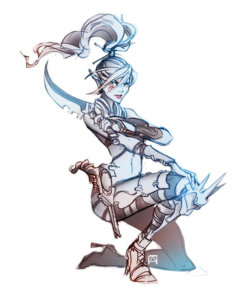 黑暗灵族角斗士。 每个巫灵都从属于一支巫灵教派,不参与外出劫掠时,她们会在角斗场中与俘虏、野兽或其他黑暗灵族角斗,通过这种血腥表演获得乐趣与利益。 一般认为巫灵对位方舟灵族的嚎叫女妖,但相比之下嚎叫女妖更像是那种衣着简朴、学习优秀、心思单纯且不会做任何出格事情的典型三好学姐,而巫灵则是对学校竖中指天天在外面开房嗑药玩儿摇滚的衣着暴露小太妹。