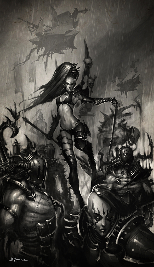 综上所述, 这群变态施虐狂能生存到现在其实并不令人意外,他们狡猾、技术先进、人丁兴旺,尽管有时会为了一块饼干自相残杀,但在进入现实宇宙作战时他们会暂时抛开分歧,一干到底。 新军书还指出黑暗灵族在内斗和社会运转方面有一套约定俗成的社会规范,严格到他们喜欢外出劫掠的原因之一就是可以暂时摆脱那些繁文缛节、肆意杀戮。另外在黑暗灵族的字典里,与“爱”这一概念最接近的意思是“自愿服从他人的意愿”,总之就是主仆那一套玩儿的贼溜。
