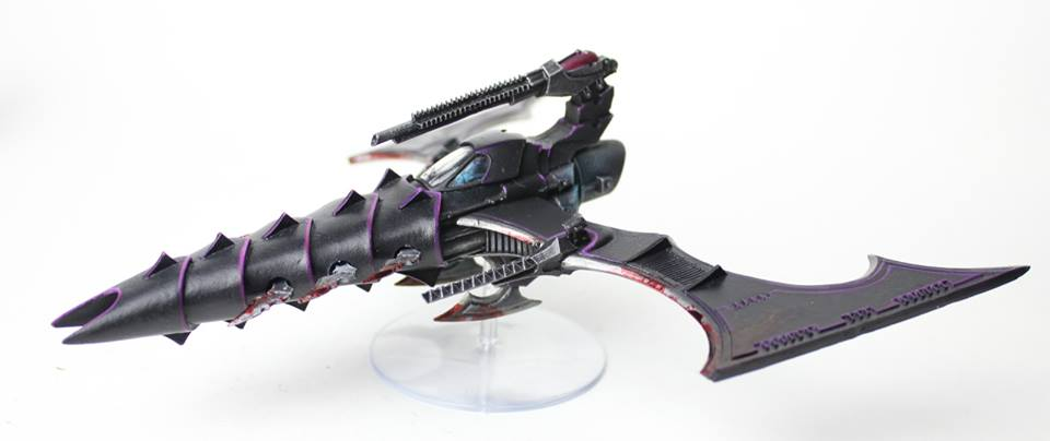 黑豆芽主力战斗机,装备两支黑暗光矛和一门长管裂解炮。 一些黑暗灵族注意到自己的轻型运输船——比如劫掠者——极度脆弱,而且也意识到或许护甲这东西还是有存在意义的。因此他们会使用渡鸦来掩护地面上的脆皮载具,攻击沿途发现的所有敌军坦克,之后再舔地步兵部队。 尽管渡鸦在黑豆芽眼里已经算得上全副武装了,但以40K平均水准来看还是甲薄如纸,所以它虽然对地面部队十分致命,但在面对专门的防空火力时依然会像一群苍蝇一样被轻易击落。