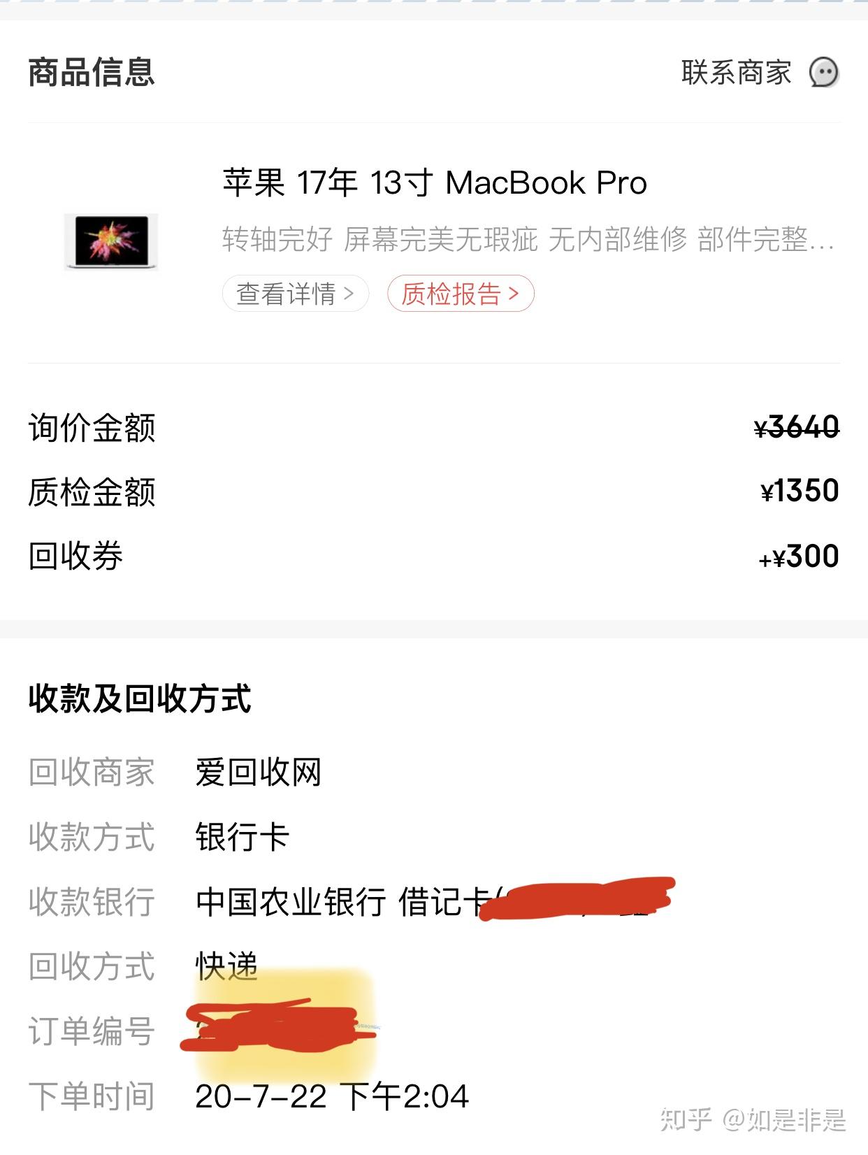 2020年7月,我想把一台17年的macbook pro出手。本人之前没有出手二手物品的经历,本次出手前,考虑过挂在闲鱼上同城交易,但由于我这段时间没在上海,而是在老家,一个18线的小城市,所以感觉出手希望不大,另外自己很忙,没时间去打理,所以放弃了这个选项。最终,为了图省事,选择了在京东的拍拍上进行回收。该回收平台实际为第三方的爱回收。做出这个选择时,也看过知乎等处关于爱回收等回收平台的大量负面评价,一度很犹豫要不要通过平台进行回收。犹豫了几天后,就还是打算寄给爱回收,就当做个测试了。