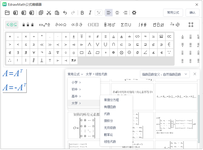 - PC端步骤:开始>公式>EdrawMath公式>常用公式