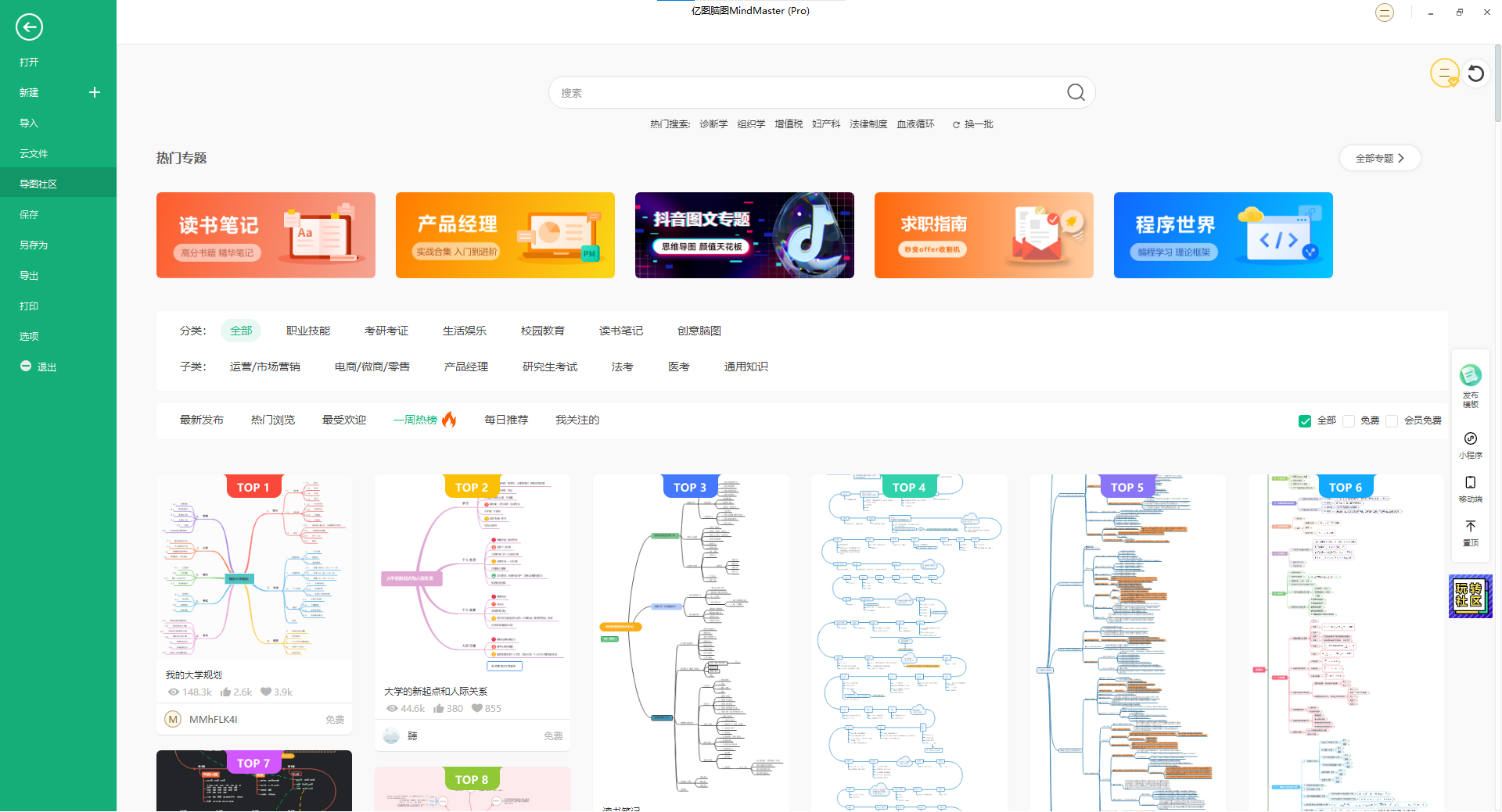 这里隆重介绍MindMaster导图社区,MindMaster导图社区是一个UGC平台,这里汇聚了MindMaster用户创作的10W+优质原创导图,囊括了