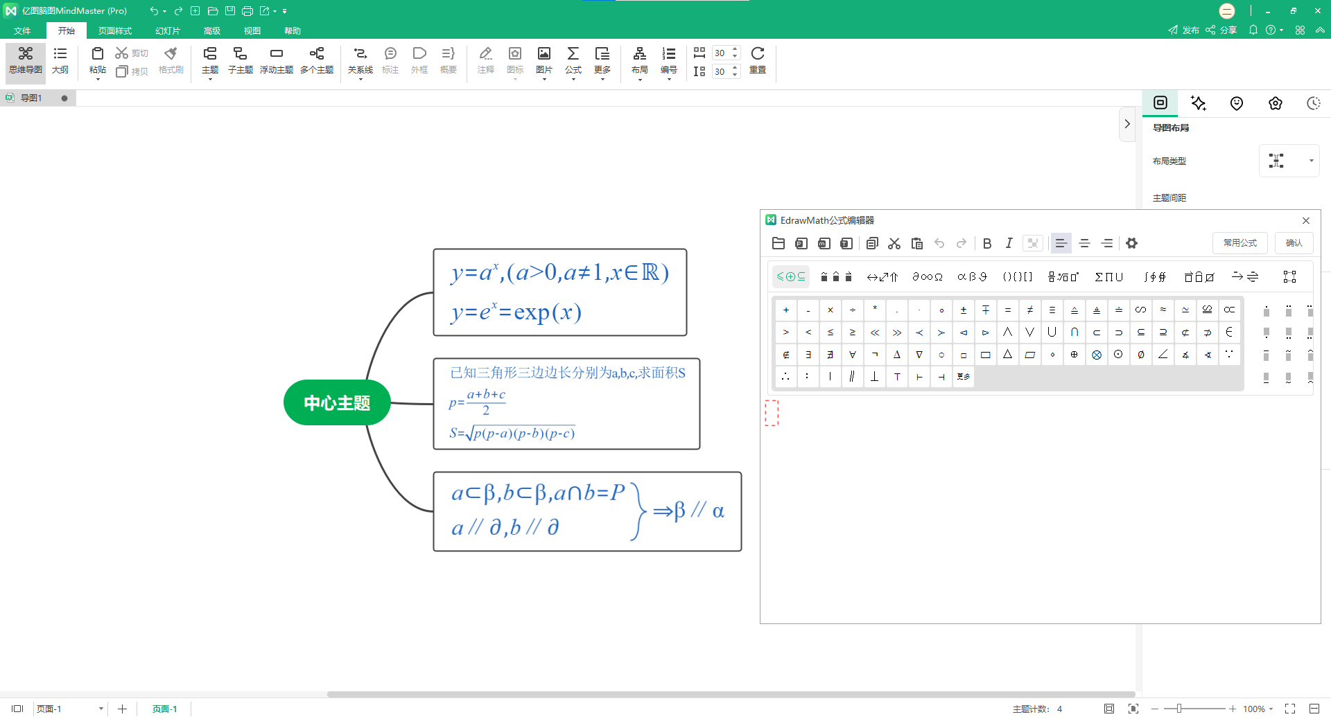 除了上方叙述的插入公式之外,MindMaster还可以插入