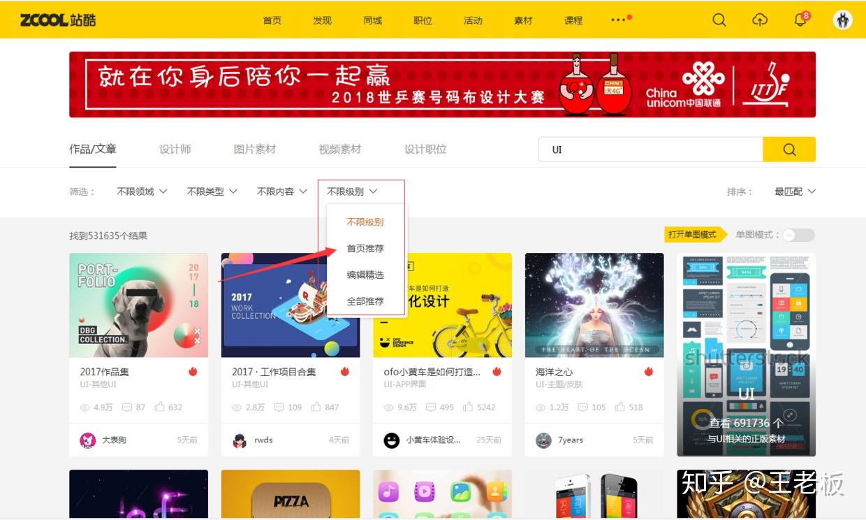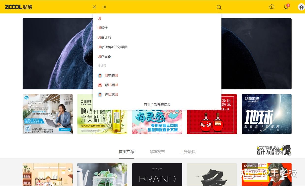 那么我们如何找到UI设计大神的作品。这里用站酷网站举例