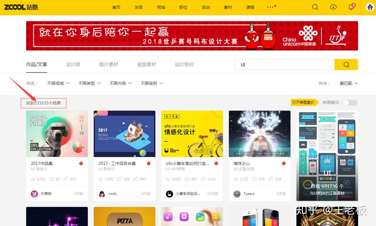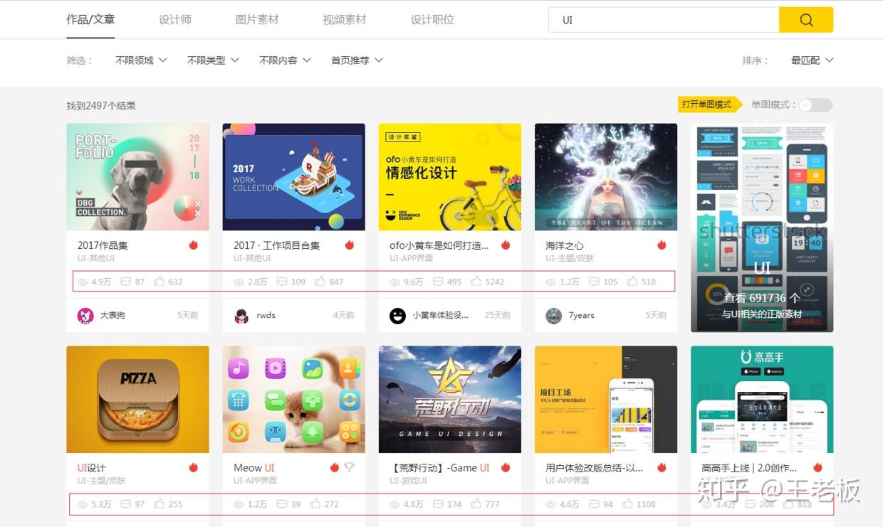 这时可以看到有50多万UI设计作品,但是我们的时间精力都有限,