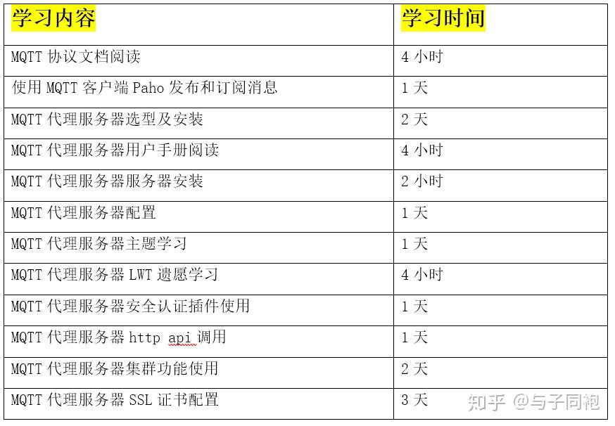 比如,要学习MQTT协议开发,可以这样制定学习计划: