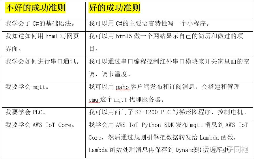 确定了学习范围还不够,我们要定义成功的准则。也就是物联网技术要学到什么程度,才算学好。