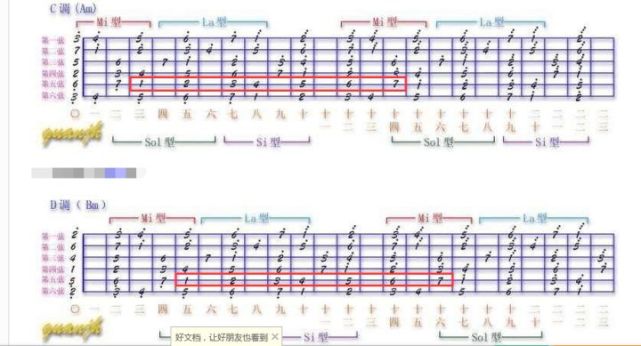 这是所有调之间区别所在,红色框中我们可以看到就是我们刚刚用D调对应C调地方,唯一带有升号的2个音就是升fa和升do。
