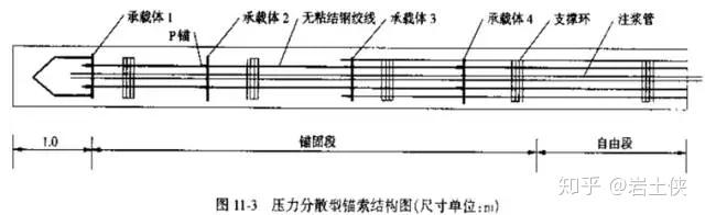 A、预应力锚杆:预应力锚杆同预应力锚索类似,只不过它的杆体材料为精轧螺纹钢筋或普通预应力钢筋,而锚索杆体材料采用的是预应力钢绞线、钢丝。但预应力锚杆提供的锚固力和锚杆长度不及锚索大、长。