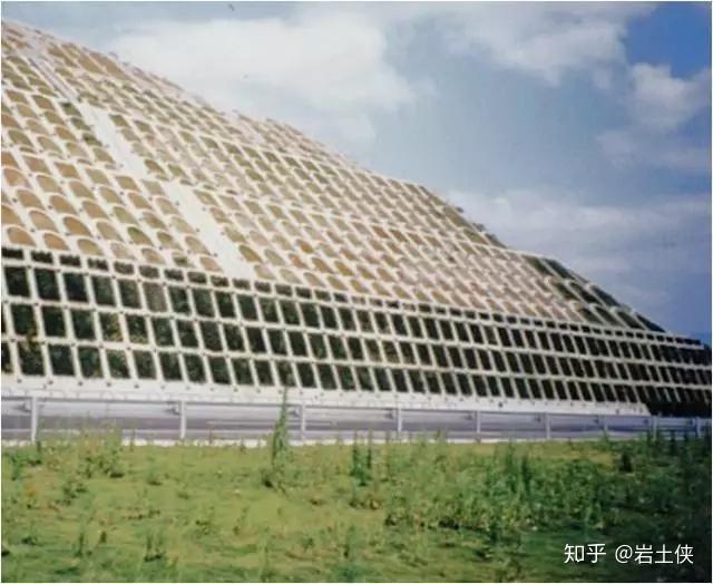 B、骨架植物防护:拱形、人字形、菱形等圬工骨架+植草防护等;