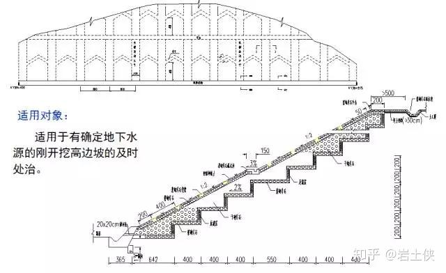 a、由于坡脚应力和地下水集中,加固工程应贯彻“固脚强腰”的原则,“固脚”即加强坡脚1、2或3级边坡的支撑力,“强腰”则是防止高边坡的局部失稳。既要保整体稳定,也要保局部稳定。