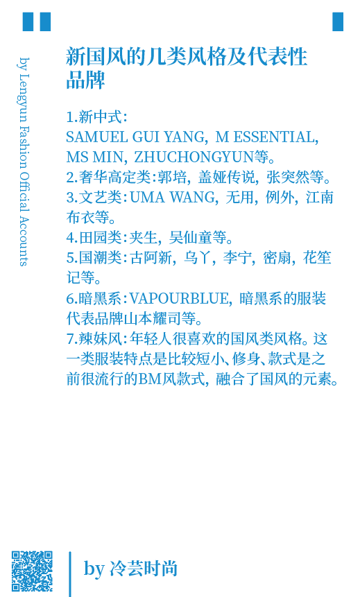 1.新中式:SAMUEL GUI YANG,M ESSENTIAL,MS MIN,zhuchongyun等。