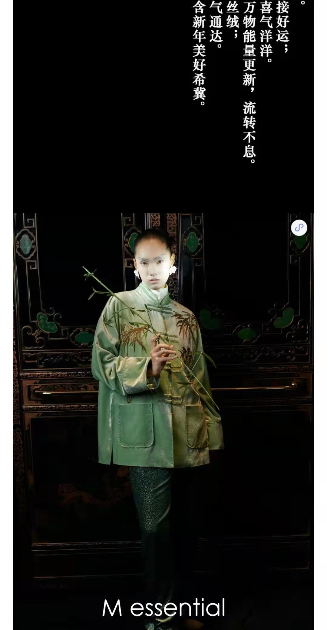 M ESSENTIAL:将古典东方美学和当代时装融合的很好,现代感很强。并且是中国为数不多结合了先锋廓形的国风感品牌。