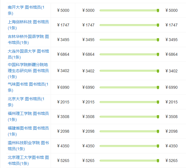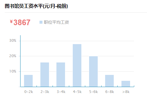 以图书管理员为例,薪资平均水平在3867,根据地区不同也会有所差异。总体来讲薪资不算高。但根据市场需求还会有上涨的趋势。