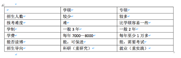 一般情况下,学硕是三年,专硕是两年,专硕的学费会比学硕要贵,学硕招生少,难度大。学硕是可以保送博士的,专硕想要读博必须要参加博士生考试,如果立志要走科研道路的话,学硕是最好的选择,如果是想要提升学历提高就业机会的话,专硕是不错的选择。现在很多人还存在着专硕不如学硕的误解,其实这两个含金量是差不多的,在找工作的时候是没有歧视的,所以并不是学硕一定比专硕好,主要还是看自己的需要是什么。