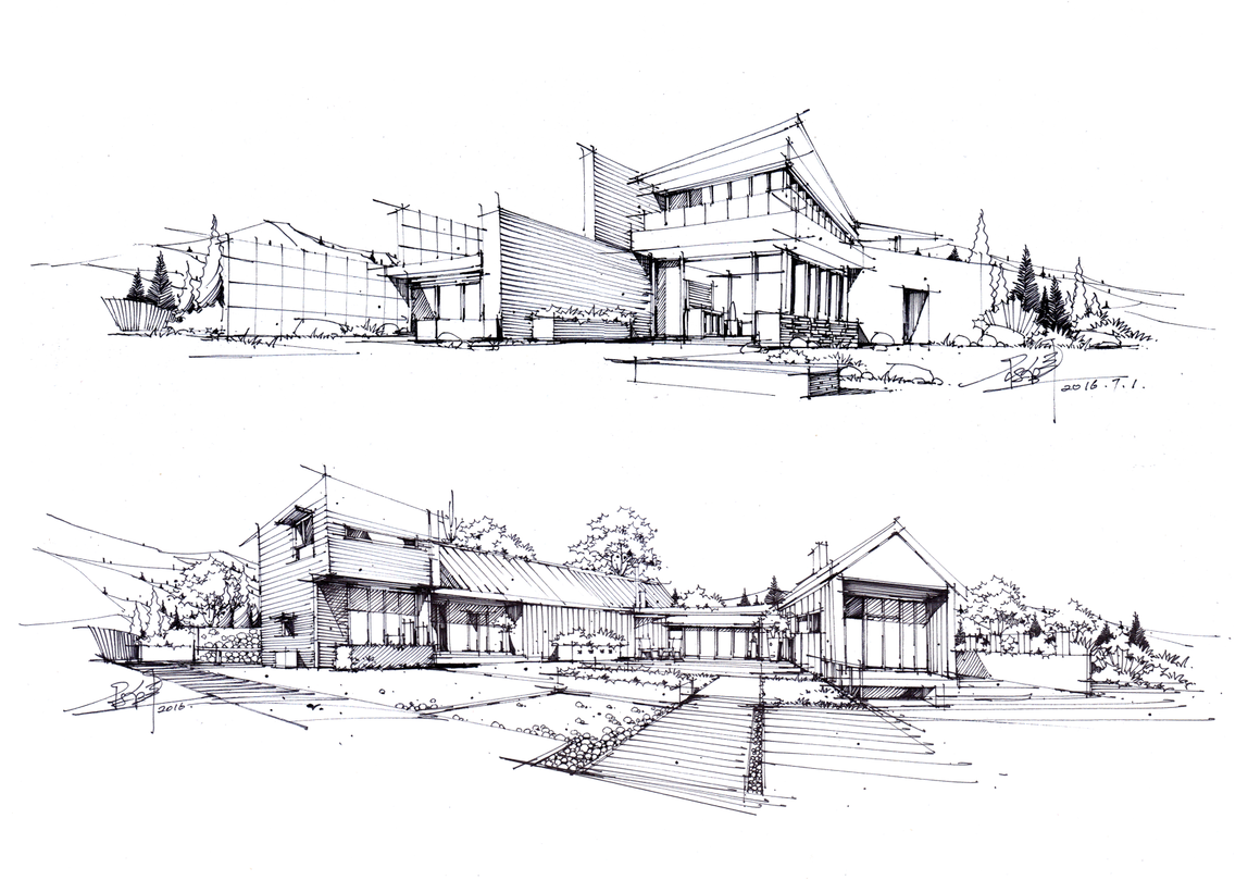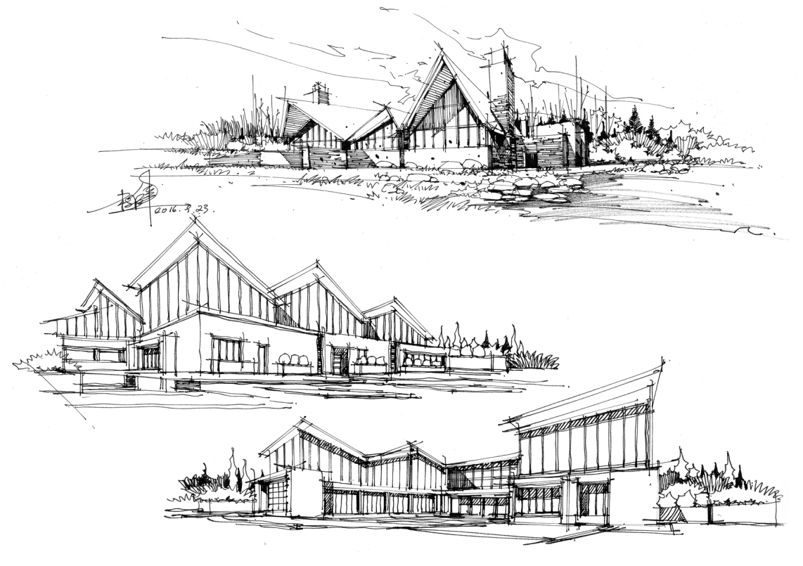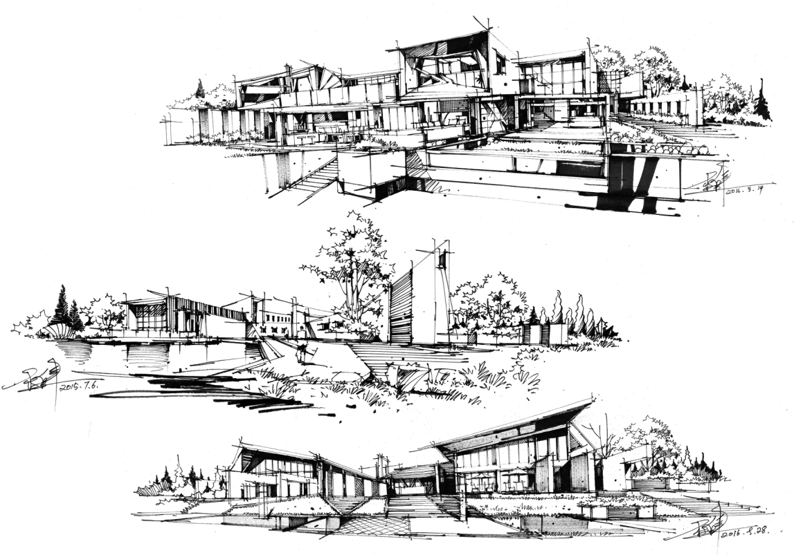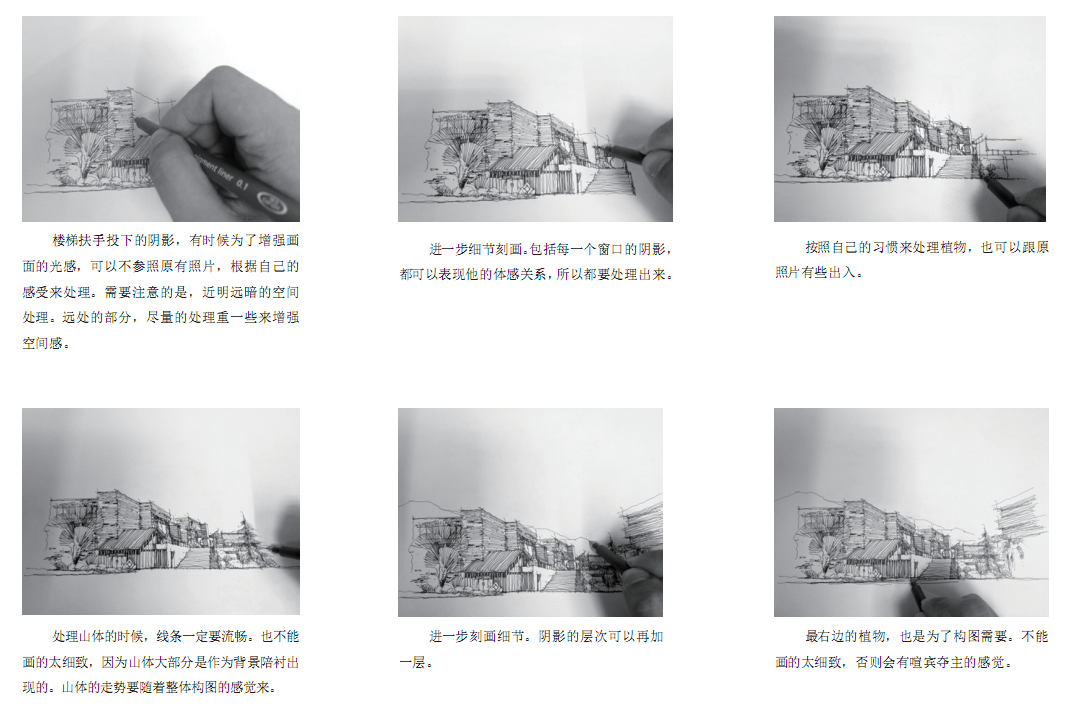 但是我要强调的是,设计草图与建筑钢笔画之间的关系。