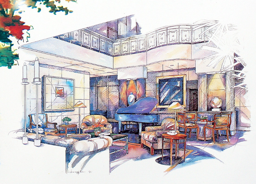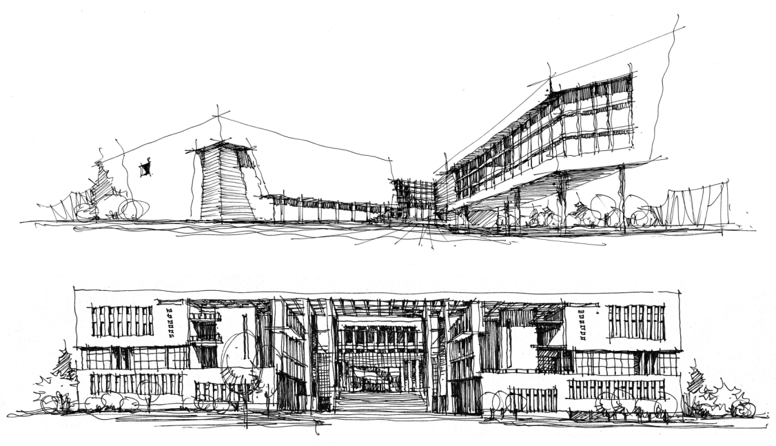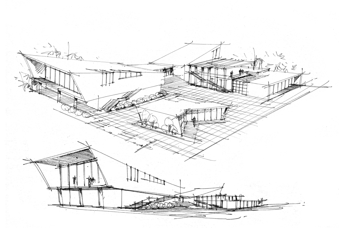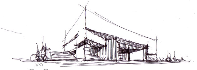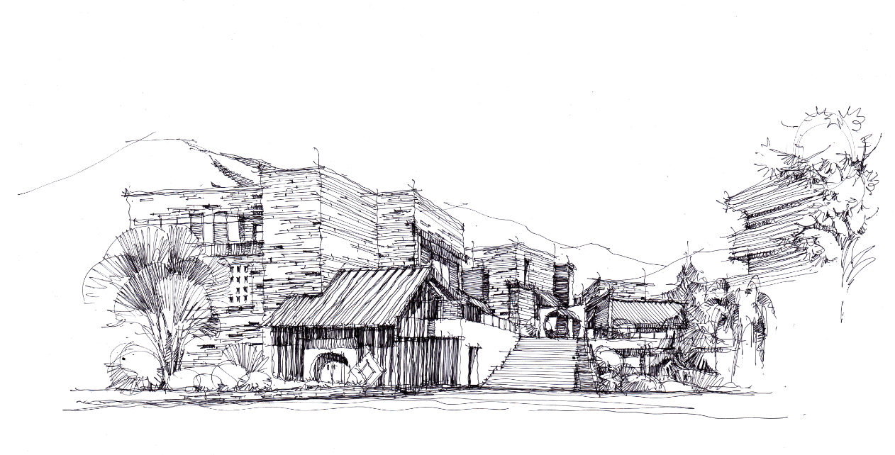 但是我要强调的是,设计草图与建筑钢笔画之间的关系。