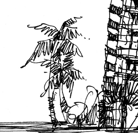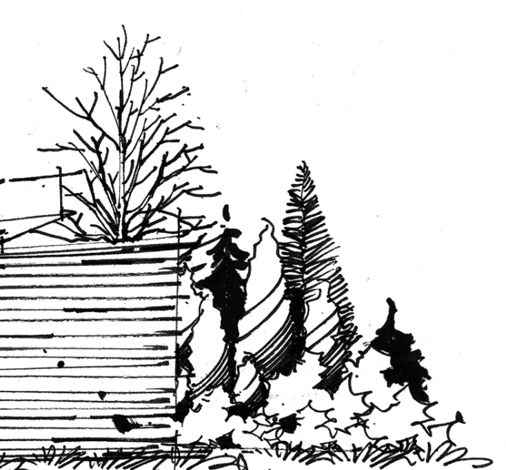 植物的处理,在建筑草图中其实也很重要。可以丰富画面和软化建筑。那么对于建筑的学生,植物这种地就比较蛋疼。植物很难画,不画多点时间可能画不好。然而建筑的学生花很多的时间来练习植物,这事情有会感觉有点鸡肋。所以,我们可以用简单且狂野的方式来表现植物。