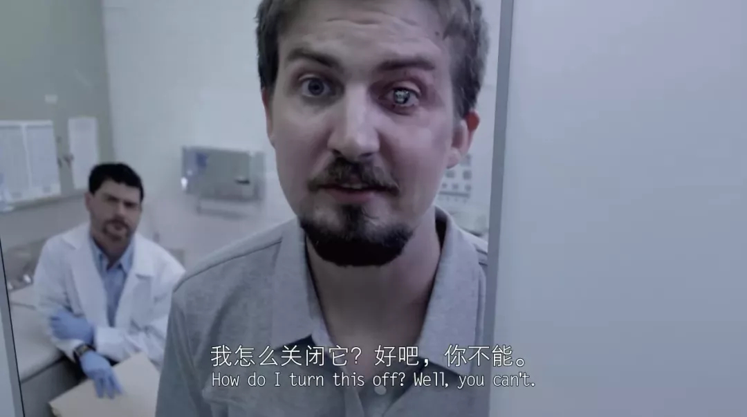 除了常见的监视器视角外,比如第二部第一个故事里,男主角接受义体手术,装了个带有录像功能的“义眼”,